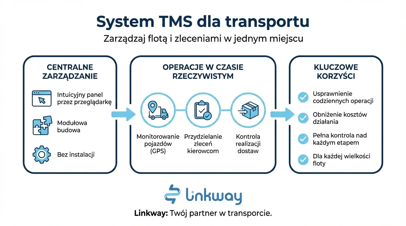 Tracisz tysiące przez brak kontaktu z kierowcą? linkway.TRACKER automatyzuje statusy i śledzi trasę w czasie rzeczywistym. Odzyskaj kontrolę nad logistyką i tnij
